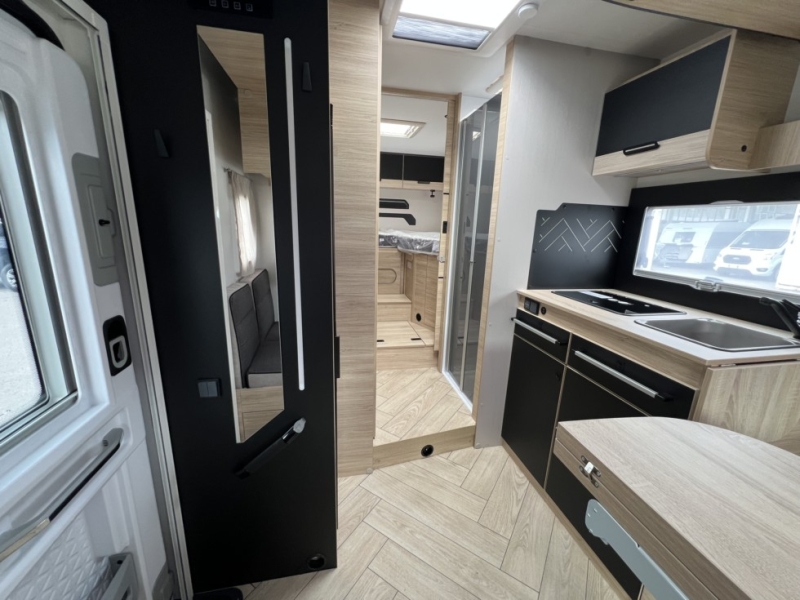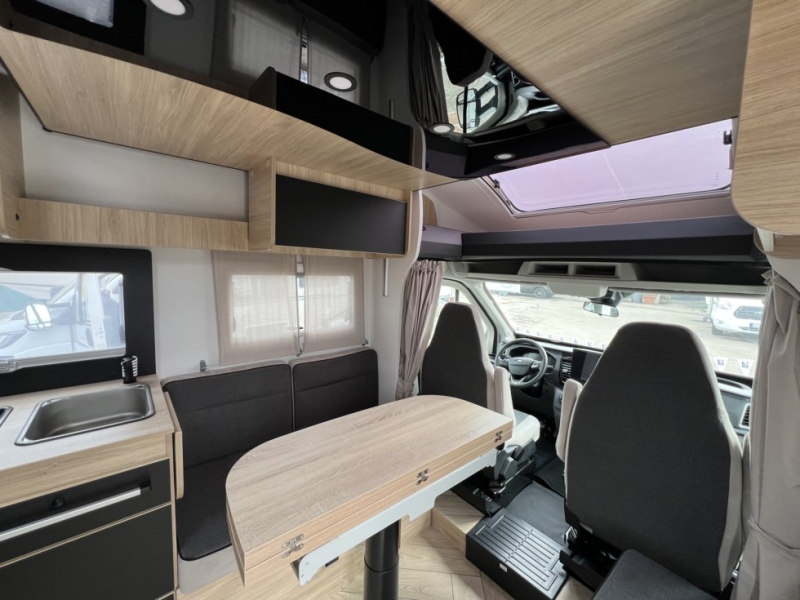 Dotazioni di serie:Cabina bianco Climatizzatore automatico cabina Freno a mano elettrico Sedili cabina girevoli e regolabili in altezza con doppio bracciolo Retrovisori elettrici con sbrinatore Regolatore e limitatore di velocità ESP-Start&Stop Isolamento gradino d'ingresso Porte cellule XL Tetto panoramico apribile Tende di separazione cellula-cabina Finestre doppio vetro con combinato oscurante/zanzariera Tende Presa USB/USB-C Presa acqua esterna Cerchi in acciaio 16" Presa gas esterna Fendinebbia Chiusura centralizzata cabina-cellula Materasso comfort letto principale Riscaldamento che utilizza il carburante del veicolo utilizzabile in marcia Illuminazione esterna sportello d'ingresso Predisposizione pannello solare Pre-cablaggio della telecamera di retromarcia Pack Safety Ford: Allarme anticollisione, controllo superamento corsia, sensore pioggio e luminosità, sensore di pressione degli pneumatici, riconoscimento dei segnali di velocità Pack Connect: autoradio DAB/Bluetooth con schermo tattile e comandi al volante e camera di retromarcia