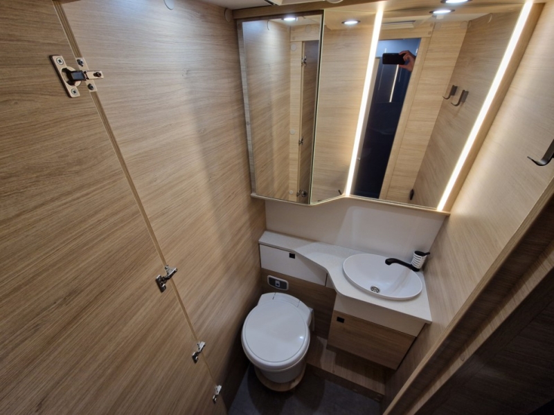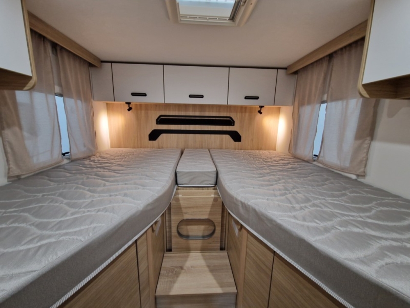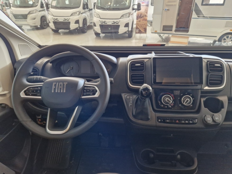 Dotazioni di base:Cabina bianco Climatizzazione manuale della cabina Airbag conducente e passeggero Fix and Go Sedili cabina girevoli e regolabili in altezza con doppio bracciolo Fodere sedili cabina coordinate con i tessuti cellula Retrovisori elettrici con sbrinatore Regolatore e limitatore velocità ESP, Traction+, Hill Descent Control EcoPack: Start&Stop, Alternatore intelligente, Pompa carburante a gestione elettronica Isolamento gradino d'ingresso Porta della cellula con finestra Tetto panoramico apribile Oblò panoramico Tende di separazione cellula/cabina Finestre doppio vetro con combinato oscurante/zanzariera Tende Cerniere ammortizzate per armadi Prese USB/USB-C Struttura IRP: tetto/pavimento/pareti poliestere, pavimento spessore 64 mm Technibox Paraurti verniciato Pneumatici 4 stagioni Fendinebbia Porta d'entrata "lusso", chiusura centralizzata cabina/cellula Testata del letto Pre-equipaggiamento TV Riscaldamento che utilizza il carburante del veicolo utilizzabile in marcia Illuminazione esterna sportello d'ingresso Armadio Predisposizione pannello solare Pre-cablaggio della telecamera di retromarcia Fissaggi Isofix Pack Connect: Autoradio DAB/Bluetooth con schermo tattile e comandi al volante e camera di retromarcia
