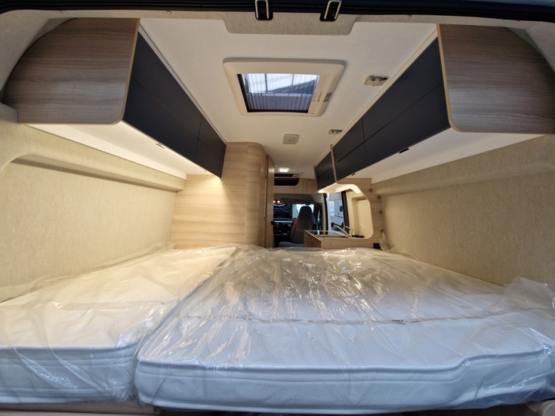 Dotazioni di serie:Bianco Climatizzazione manuale di cabina Airbag conducente+passeggero Fix and Go Sedili cabina girevoli, regolabili in altezza con doppio bracciolo Retrovisori elettrici con sbrinatore Regolatore e limitatore di velocità ESP Traction+ Hill Descent Control Eco Pack: Start&Stop, alternatore intelligente,pompa carburante a gestione elettronica Oblò panoramico Finestre doppio vetro con combinato oscurante/zanzariera Oscuranti isotermici interno cabina Presa USB/USB-C Cerchi in acciaio 15" con copricerchio grigio Pneumatici 4 stagioni Pre-equipaggiamento TV Bagno con finestra Stufa a gas Prolunga tavolo dinette Gradino elettrico Predisposizione pannello solare Pre-cablaggio della telecamera di retromarcia