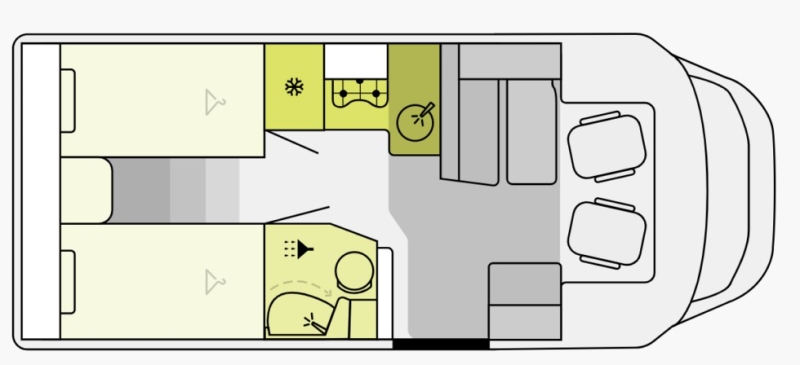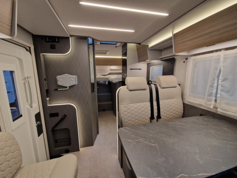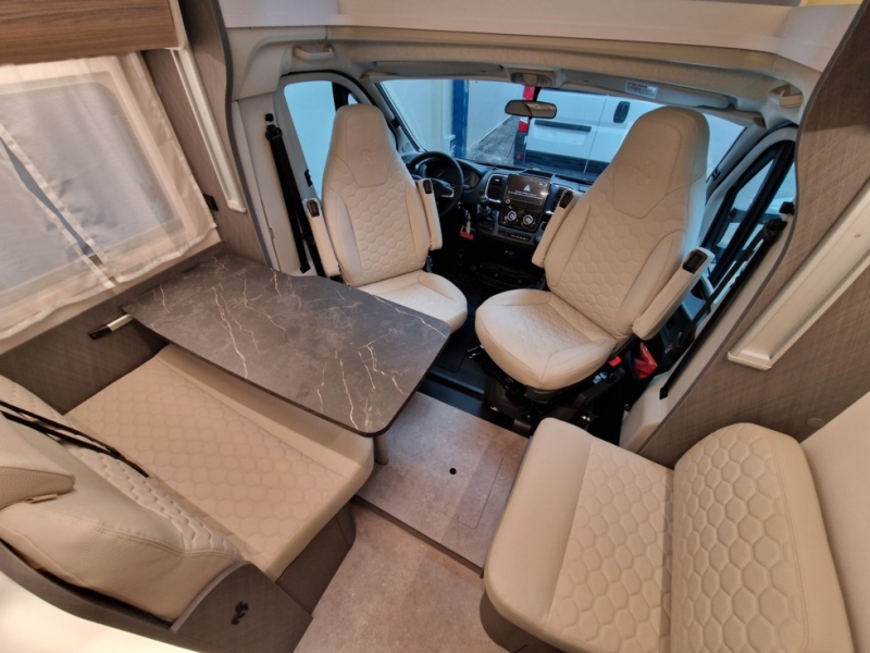 Accessori: Trasformazione della dinette in letto € 410,00 Letto basculante elettrico € 1.845,00 Quinto posto a sedere sul divanetto laterale € 770,00 Tappezzerie portofino (beige) € 820,00 Oscuranti plissetati in cabina € 0,00