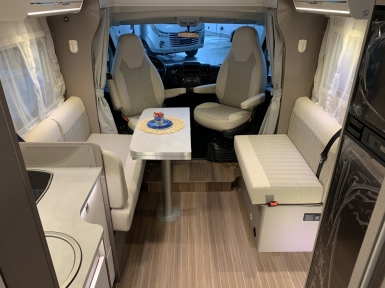 Pacchetto base:Oblò panoramico sul tetto Oblò vetro trasparente 40x40 Rivestimento doccia Specchio con ganci appendiabiti Doccia con pedana in legno Captain-Chair con due braccioli e rivestimenti nel tessuto della zona giorno Illuminazione interna a LED Presa aggiuntiva in cucina Presa elettrica in garage