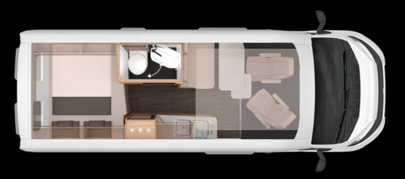 Van comodo per la famiglia: infatti grazie ai due comodi letti, uno basculante anteriore e uno posteriore sempre basculante, abbiamo sempre 4 posti letto. Inoltre grazie al letto basculante posteriore si ottiene anche molto stivaggio.