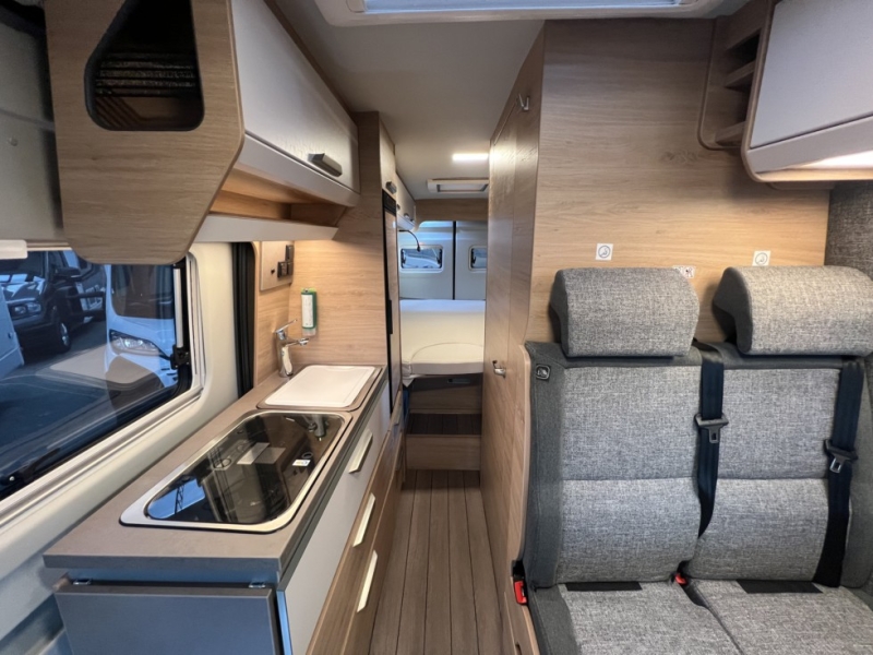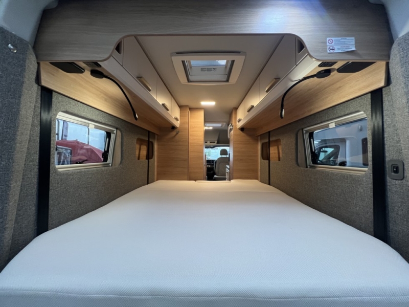 Grazie al suo piano girevole, il tavolo sospeso della dinette è perfettamente accessibile sia dalla panca che dai sedili girevoli della cabina guida.