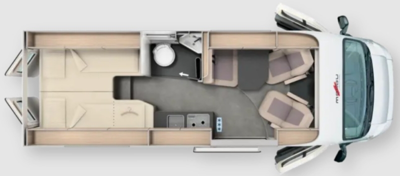 Optional:Pacchetto Relax Active € 6.910,00 Radio Moniceiver Pioneer 6,8" con DAB+ Cornice del faro in nero Sisetma di oscuramento della cabina di guida Remis con plissè su parabrezza e sui finestrini laterali Specchietti esterni ripiegabili elettricamente Prese aggiuntive con 3 prese USB e 2 da 230 V Aiuto parcheggio con sensori posteriori Zanzariera dietro la porta scorrevole Serbatoio carburante da 90 lt Volante multifunzione Colore esterno bianco Truma Combi 4 London 25 Motore 140 CV con cambio manuale