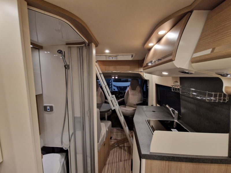 Optional:Pacchetto telaio € 3.785,00 Sistema di oscuramento della cabina Remis con plissè su parabrezza e sui finestrini laterali Zanzariera dietro la porta scorrevole Specchietti esterni, regolabili e ripiegabili elettricamente e riscaldabili Sedile passeggero regolabile in altezza Sedili pilota rivestiti in stesso tessuto del salone inclusi braccioli imbottiti Predisposizione radio con antenna sul tetto e DAB+, altoparlanti (4x) Serbatoio carburante da 90 litri Booster di ricarica Cornice del faro in nero Aiuto parcheggio con sensori posteriori