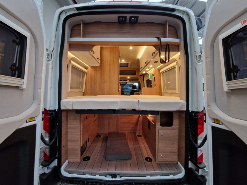Dotazioni di serie:Paraspruzzi posteriorePiantone dello sterzo regolabile in altezza e in profondità Chassis con verniciatura pastello: Frost White Pneumatici da 16" Volante in pelle con comandi per la radio Coprisedili di alta qualità nel design Weinsberg Supporto per il tablet Cruise Control ESP ABS Ripartizione elettronica della forza frenante (EBD) Traction Control System (TCS) Freno a mano elettrico Computer di bordo con informazioni su consumo e chilometraggio Serbatoio carburante da 70 lt Fari alogeni di serie con luci diurne Vetri termoisolanti, leggermente colorati Altoparlanti aggiuntivi nella zona giorno (2 pezzi) Dispositivo di traino Gradino d'ingresso elettrico Ampio vano di stivaggio variabile nella parte posteriore Gavone portabombole per lo stoccaggio di 1 bombola di gas (da 3 Kg) Finestra a compasso, con oscurante e zanzariera (vano toilette) Grondaia sopra portellone scorrevole dotata di illuminazione a LED Design del mobilio: Tiberino Antine dei mobili color bianco Tavolo girevole (singolarmente - senza letto ospiti) Panca dinette con riscaldamento integrato Variante tappezzeria: Kocaeli Combinazione fornello - lavello con 2 fuochi ad accenzione elettrica e copertura in vetro divisa Piatto doccia con percezione aptica "duna di sabbia" WC a cassetta Thetford, girevole Pannello di controllo del riscaldamento TRUMA iNetX Impianto idrico azionato da pompa ad immersione Booster di ricarica per batteria di bordo Presa SCHUKO 230 V supplementare nella zona dinette e nella parte posteriore Illuminazione interna in tecnologia a LED 10 anni di garanzia sull'impermeabilità della scocca Optional: FORD TRANSIT 3.500 Kg, L3 FWD 2.0 l EcoBlue Light Duty; 170 CV € 1.528,00 Cambio automatico a 6 rapporti € 2.436,00 Cerchi in lega FORD su pneumatici di serie€ 1.712,00 Zanzariera porta € 545,00 Finestra a compasso posteriore, con oscurante e zanzariera (dx) € 399,00 Finestra a compasso posteriore, con oscurante e zanzariera (sx) € 399,00 Riscaldamento a diesel TRUMA Combi 6 D € 404,00 Serbatoio di recupero acque grigie coibentato e riscaldato € 364,00 Predisposizione per impianto solare e satellitare € 120,00 Tendalino 300 x 250 cm, antracite € 1.323,00