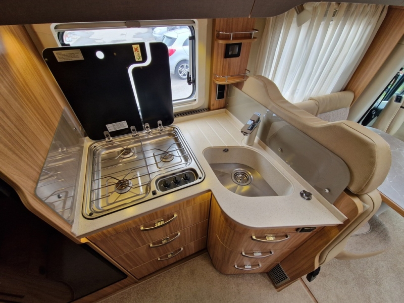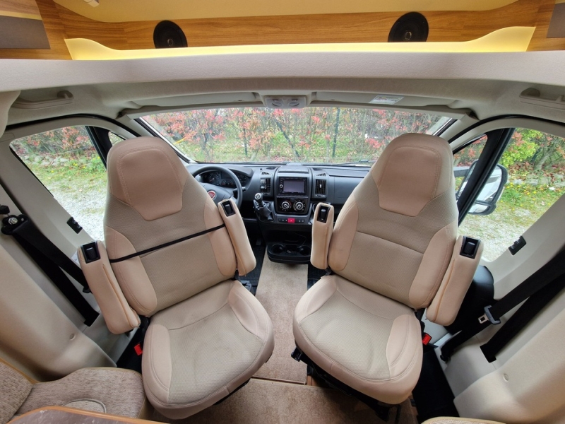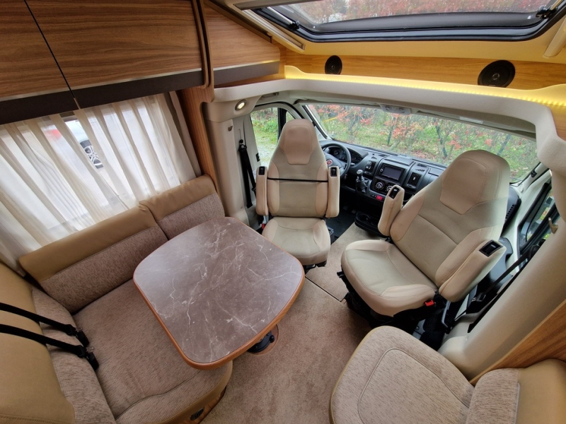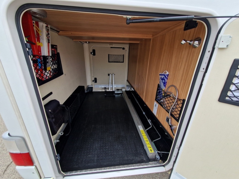 sospensioni ad aria posterioriportamoto nel garage Pollicino tendalino multimedia retrocamera pannello solare antenna satellitare a puntamento automatico riscaldamento supplementare Webasto batteria al litio attacco esterno rapido gas attacco rapido estrno acqua scarico elettrico acque grige inverter 2 kw in rete moquette cellula frigorifero lt 142